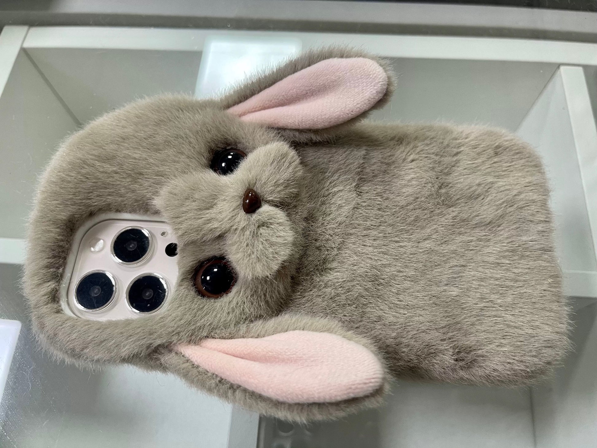Cute Bunny Phone Case For iPhone 14 Plus 13 Pro Max 12 Mini XR 7 8,Pet Phone Case,Pet lovers,Fluffy Plush,Personalized Gifts